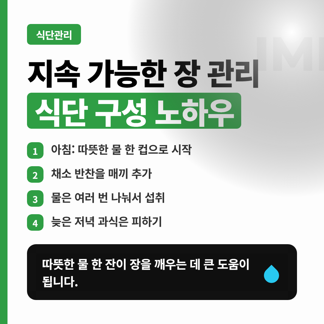 추천 음식은 자신의 소화 상태에 맞춰 천천히 늘리는 것이 좋아요. 특히 평소에 채소를 잘 안 먹던 분이라면 한꺼번에 많이 늘리기보다 매끼 조금씩 추가하는 방식이 편해요.