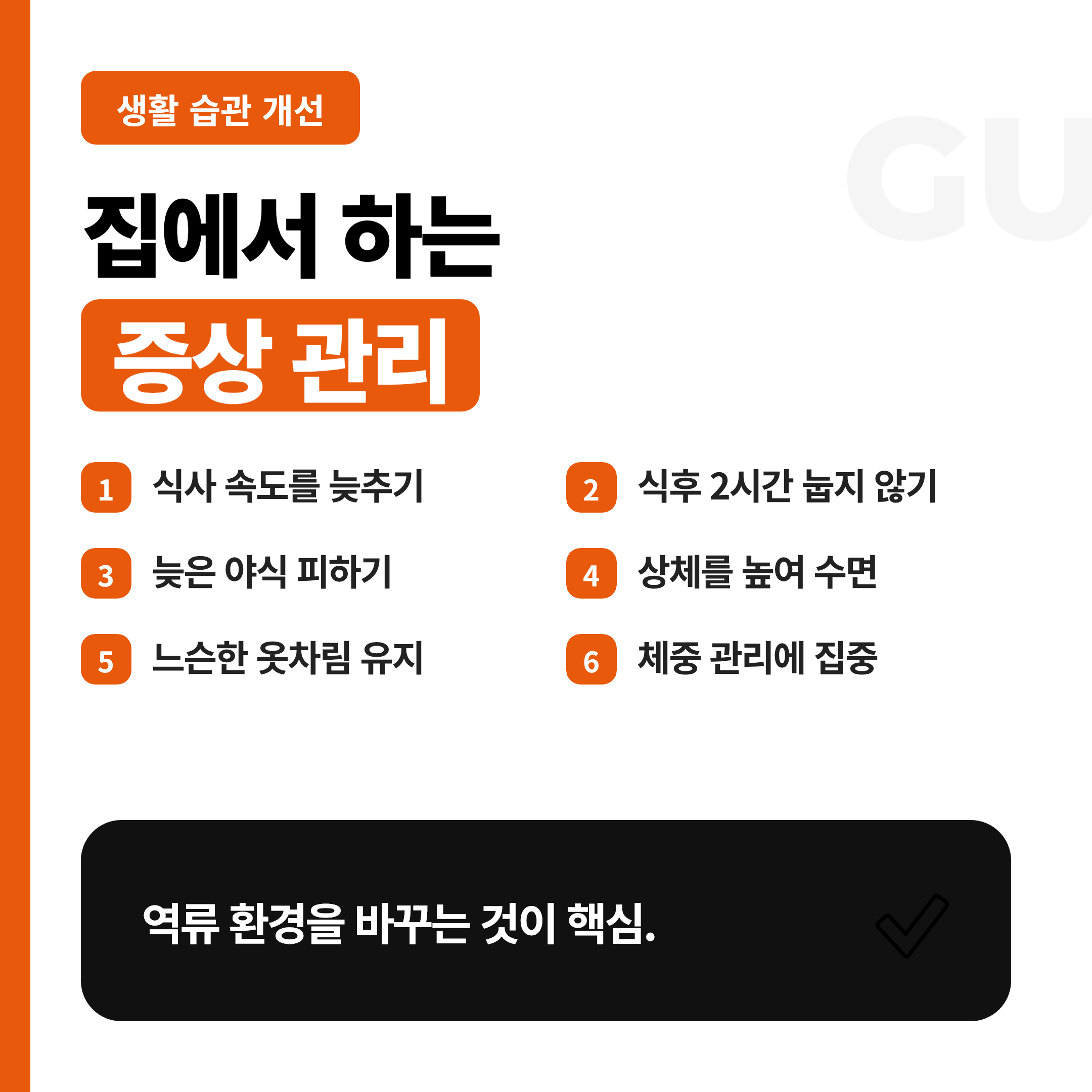 특히 식사 직후에 심해지고, 누우면 더 올라오는 느낌이 강해지는 패턴이라면 가능성이 더 높아져요. 증상이 자주 반복되면 일상에서 집중력이 떨어지고 피로가 쌓이기 쉬우니 초기에 패턴을 잡아두는 게 좋아요.