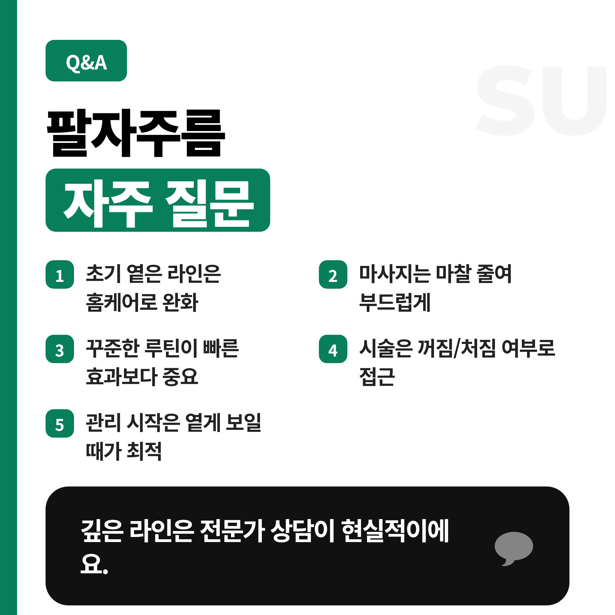 팔자주름 없애는 방법을 찾는 분들이 특히 많이 궁금해하는 질문을 모아 정리했어요.