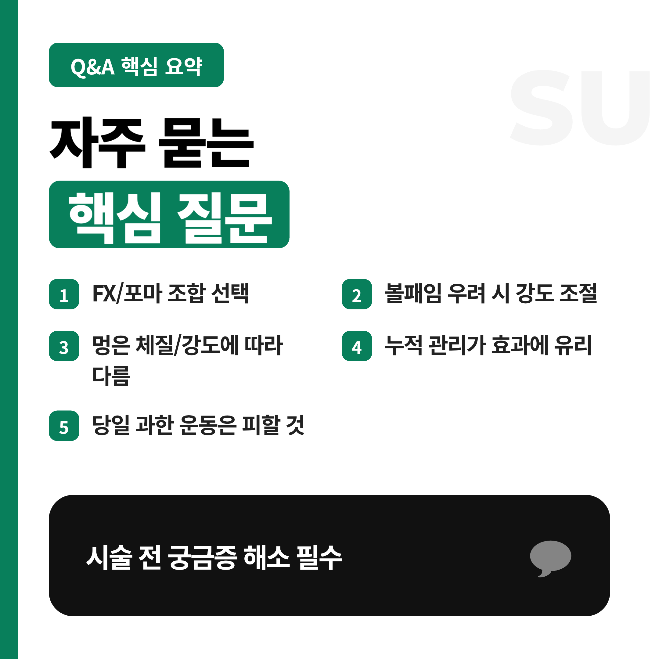 - 시술 당일과 다음 날은 과한 음주, 사우나, 격한 운동은 피하는 편이 좋아요
