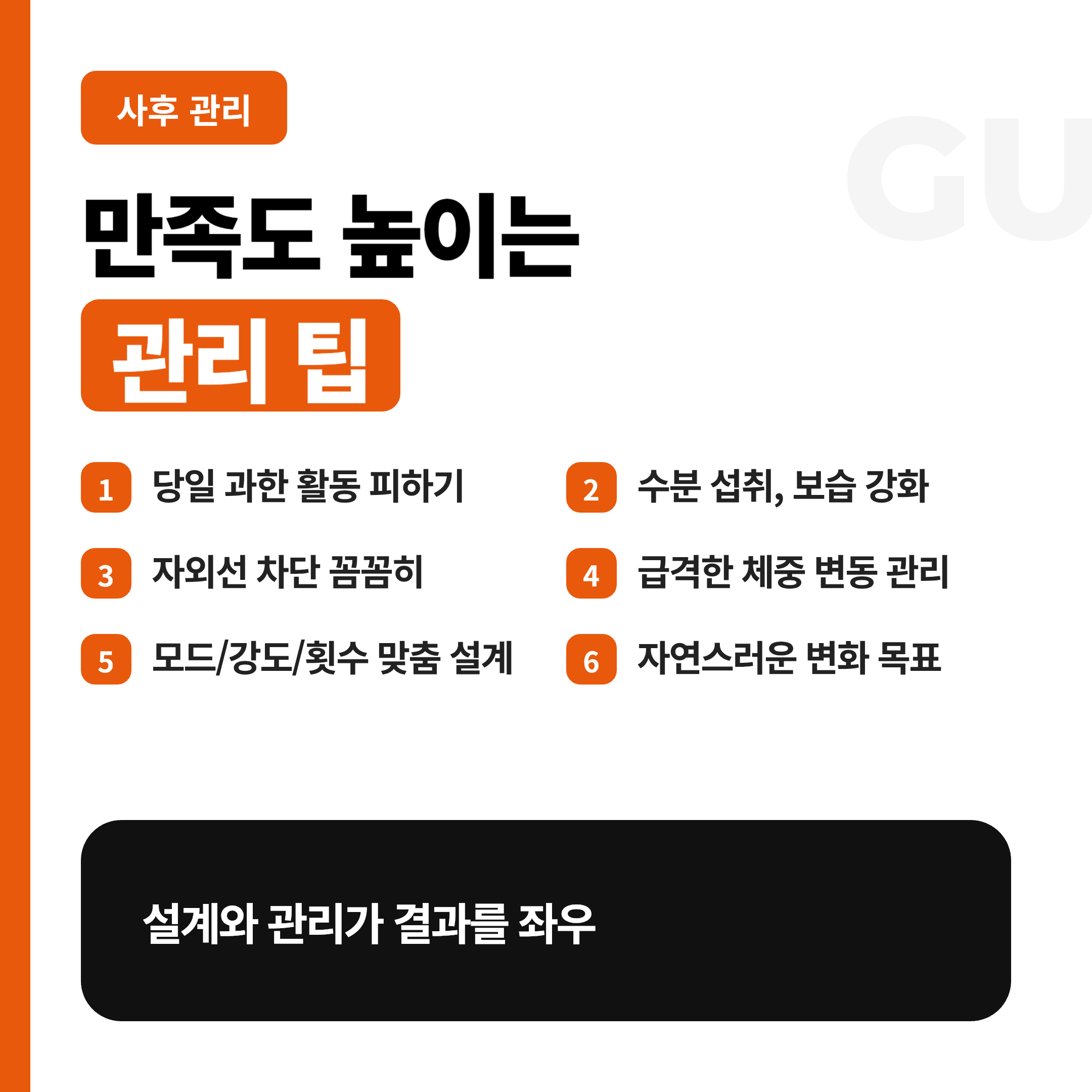 - 체중 변동이 크면 라인이 흐려질 수 있어 유지 관리에 불리해요